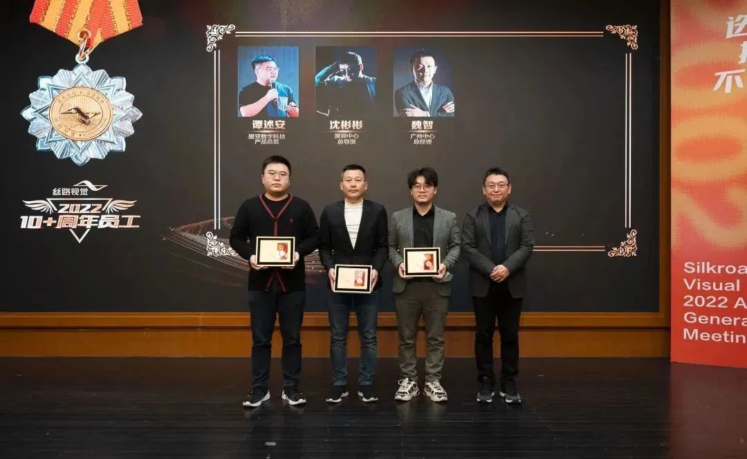 从创业到守业,公司已走过了二十个春秋。丝路视觉的成就与蜕变离不开各位老员工的恪尽职守,全力以赴,他们用青春与汗水见证了丝路的每一步成长,用捍卫初心的力量助力丝路视觉追梦前行。本次大会最后举办20周年特别表彰活动,为公司十周年、十五周年员工颁发荣誉勋章。