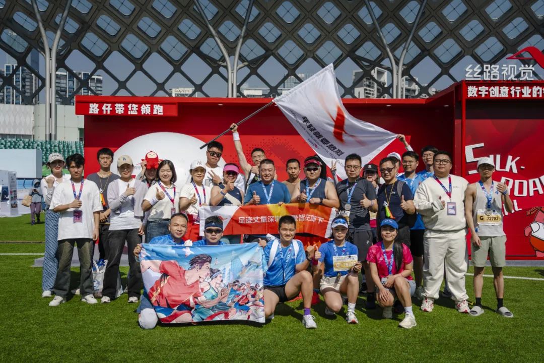 在大家激情参赛的同时,丝路视觉小伙伴组成的拉拉队伍也在场外为选手们呐喊助威,助力一路奔跑向前。