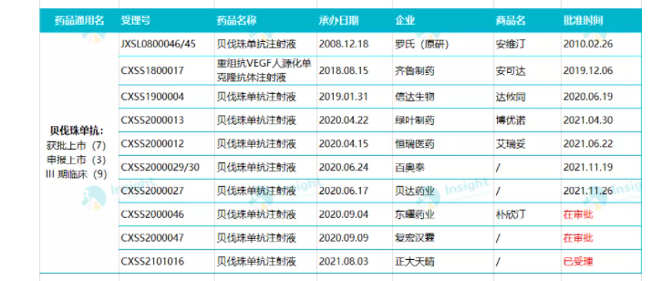 截至目前,这是国内获批的第7款贝伐珠单抗。而紧随其后的东曜药业、复宏汉霖 2 家也已经进入行政审批阶段,预计将在近日获批;天晴的贝伐珠单抗在今年 8 月也已经申报上市。
