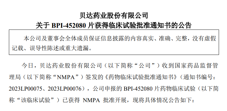 1月12日,贝达药业宣布其口服HIF-2α抑制剂BPI-452080已获得NMPA批准开展临床试验,旨在探索BPI-452080单药治疗晚期恶性实体瘤患者的有效性与安全性。