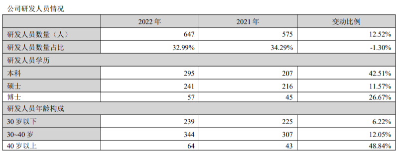 组织架构方面,贝达药业2022年末在职公司人数接近2000名,其中研发人员647名,增长12.52%。