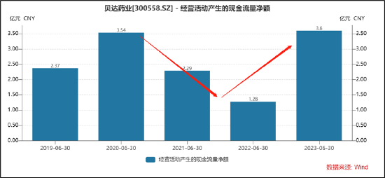 此外,近几年半年报,贝达药业的现金流较为波动,具体如下图: