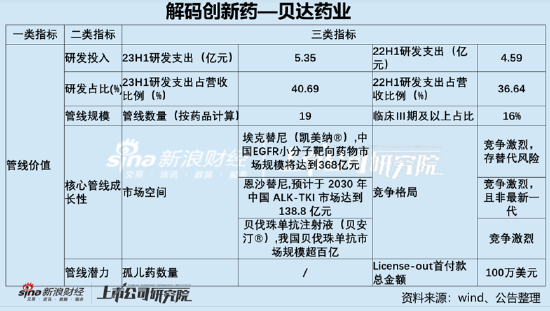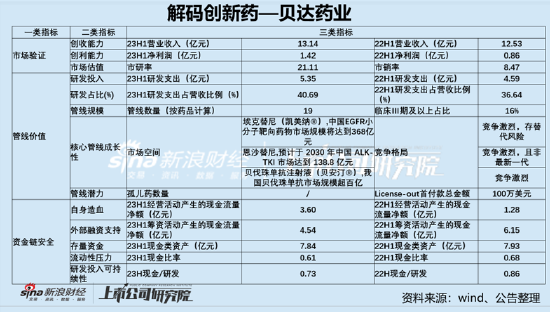 为此,新浪财经上市公司研究院梳理了部分代表创新药企,从业绩表现、研发投入、融资能力、现金流、管线规模、Ⅲ期临床管线及上市药品占比、获得孤儿药认证情况、License out金额……试着从市场验证、管线价值、资金流安全等三大维度,绘制出创新药企全景图,解码国内创新药企价值与风险,本期标的为贝达药业。