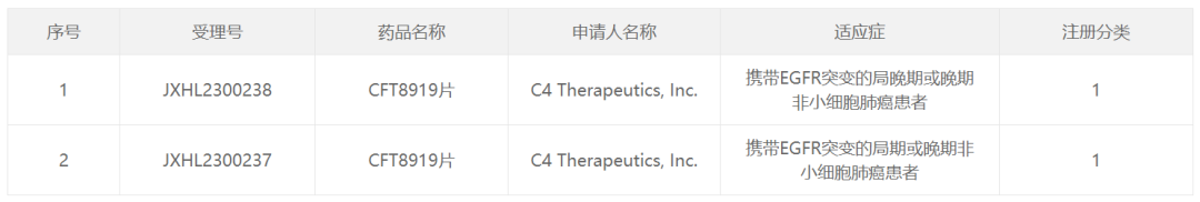 今年9月,贝达药业收到国家药品监督管理局签发的《受理通知书》(受理号:JXHL2300237、JXHL2300238),公司从C4 Therapeutics(C4T)引进的CFT8919片携带EGFR突变的非小细胞肺癌患者适应症临床试验申请获国家药品监督管理局受理。