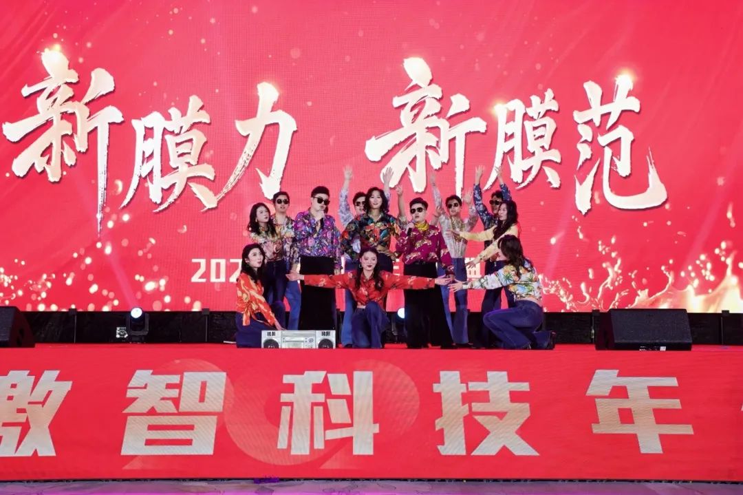 年会在激昂的激光秀中拉开帷幕,董事长张彦博士走上舞台,发表了主题为“未来已来”的精彩致辞。他展示了两段AI的创作成果,并鼓励亲人们要学习AI,拥抱AI。随后,他回顾了过去一年激智科技DPP复合膜、间隙反光膜、PS膜等产品在科技创新、节能环保以及市场拓展等方面取得的领先成绩,展望了2025年的发展蓝图。2025年,激智科技将以“标准化、自动化、数字化、智能化、可视化”赋能智造,以”三零、四度、七有”为新的方法论,实现功能性薄膜在光电、光伏、汽车、电池等四大行业的集群化发展。并鼓励亲人们在追梦的路上要努力拼搏,要向优秀的榜样学习,做到“鸟随鸾凤飞腾远、人伴贤良品自高”。