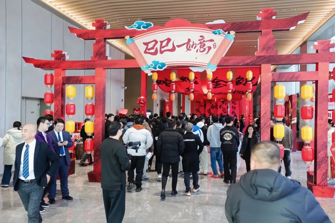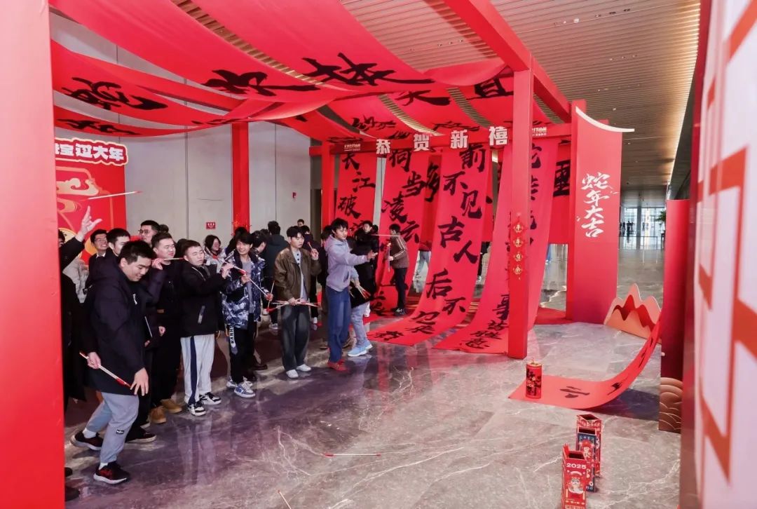 踏入会场,映入眼帘的是红红火火的灯笼高高挂起,将整个空间映照得喜气洋洋;大气磅礴的红色帷幔从墙顶垂落,宛如一道道流动的红绸,随风轻轻摆动;琵琶、古筝等弹奏优雅响起,那灵动的音符如潺潺流水,淌过每一位来宾的心间。投壶区域围满了兴致勃勃的参与者,大家手持箭矢,眼神专注,试图精准投入壶中;敲锣处同样热闹非凡,那响亮的声音仿佛在宣告着新年的蓬勃朝气与美好祝愿。现场洋溢着的浓厚国风氛围,仿佛让人穿越回了那个风华绝代的盛世。