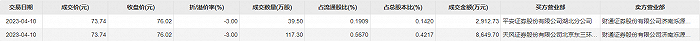 精测电子4月10日大宗交易成交156.8万股,成交额1.16亿元,占当日总成交额的10.78%,成交价73.74元,较市场收盘价76.02元折价3.0%。