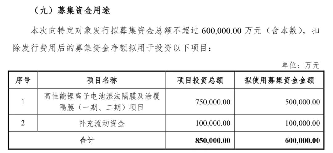 星源材质又出定增计划,并拟将其中高达50亿元的资金投入锂电隔膜项目。