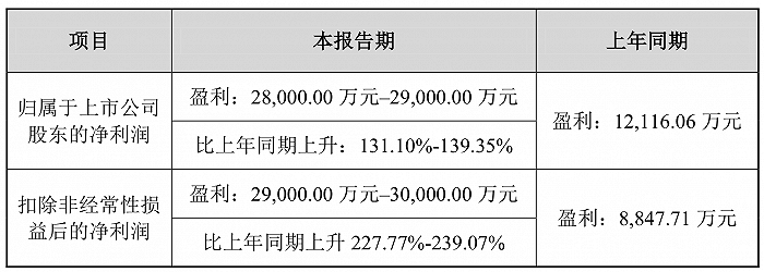 1月27日,星源材质发布年度业绩预告,公司预计2021年实现归属于上市公司股东的净利润2.8亿元-2.9亿元,同比增长131.10%-139.35%;预计扣除非经常性损益后的净利润2.9亿元-3.0亿元,同比增长227.77%-239.07%。
