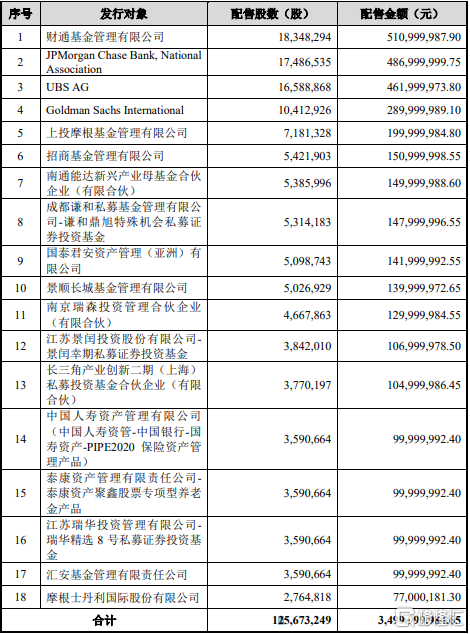 星源材质(300568.SZ)披露定增结果,确定此次发行价格27.85元/股,发行股数约1.26亿股,募资总额约35亿元;发行对象最终确定为18家,锁定期为6个月。