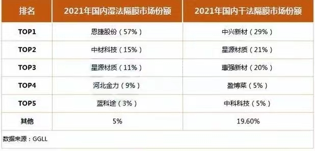 截至2021年底,公司干法市占率为21%,位居行业第二;湿法市占率为12%,位居行业第三。在湿法隔膜领域,跟恩捷股份57%的市占率相比,更是存在着不小的差距。