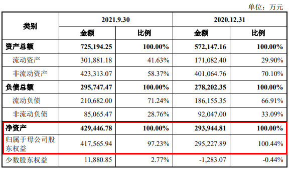 监管部门指出,公司拟融资规模已经高于发行人最近一期归属于母公司股东权益41.76亿。而截至2021年9月30日,星源材质净资产为42.94亿元。