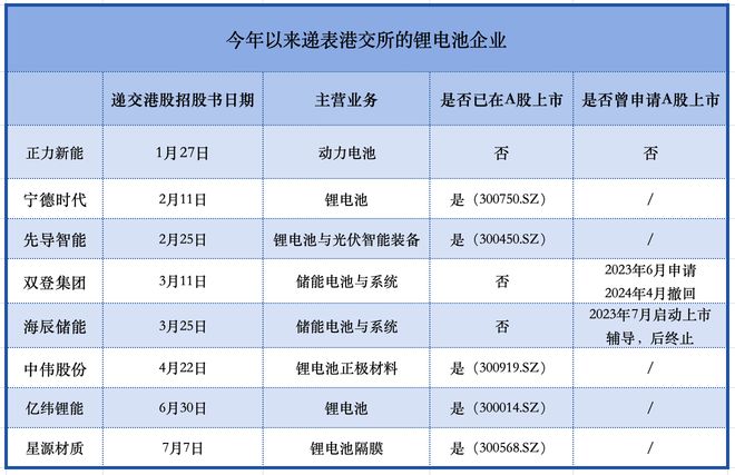 “南下”融资是今年锂电产业的关键词之一。据贝壳财经记者不完全统计,今年以来递交了港交所招股书的锂电企业已达8家。此外,欣旺达(300207.SZ)、天赐材料(002709.SZ)等企业也已宣布启动H股上市。