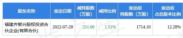 7 月 29 日平治信息发布公告《平治信息:关于持股 5%以上股东减持股份比例超过 1%的公告》,其股东福建齐智兴股权投资合伙企业(有限合伙)于 2022 年 7 月 26 日至 2022 年 7 月 28 日间合计减持 211.0 万股,占公司目前总股本的 1.5122%,变动期间该股股价下跌 1.53%,截止 7 月 28 日收盘报 46.24 元。
