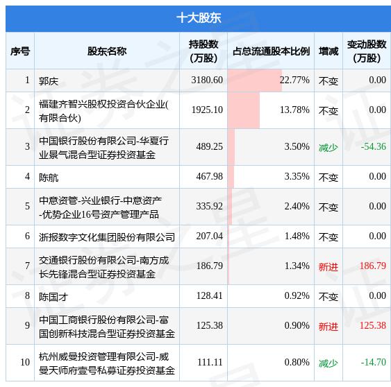 根据平治信息 2022 年一季报公布的十大股东详情如下:
