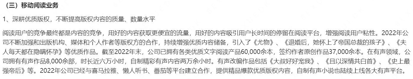 据悉,平治信息2022年年报中,除投资者通常较为关注的具体财务指标外,其在移动阅读业务阐述部分,列数了数部“优质作品”,由于作品名称过于抓人眼球,引发网友关注和热议。