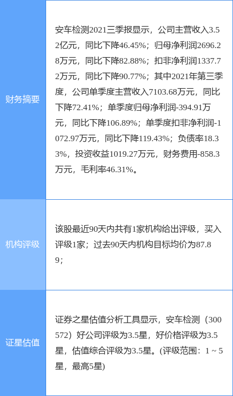 安车检测公告,公司预计2021年度实现归属于上市公司股东的净利润为1050万元-1500万元,同比下降92.06%-94.44%。