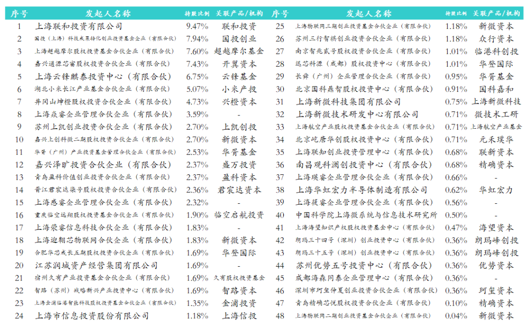 股东包括联和投资、国投(上海)、国家大基金一期、云峰基金、小米产投、华登国际、朗玛峰创投等。
