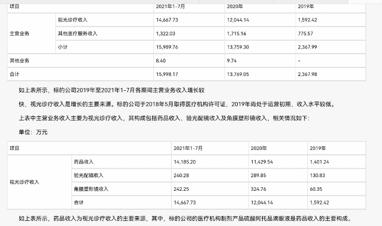 而公司医疗服务收入的增加则主要来自兴齐眼科医院的门诊收入、住院收入、视光收入及药品收入。兴齐眼药在2021年10月25日回复深交所《关于对沈阳兴齐眼药股份有限公司的关注函》中表示,兴齐眼科医院最主要的收入是医疗机构试剂组成的药品收入,其中主力就是硫酸阿托品滴眼液。