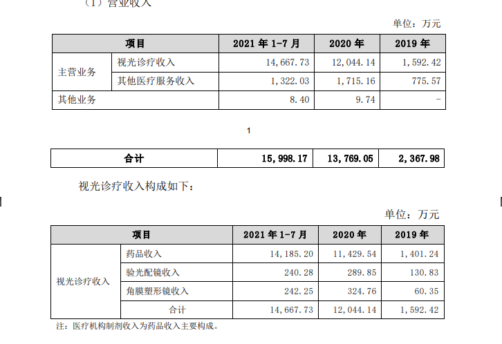 据公司相关公告,2018~2020年及2021年前7个月,兴齐眼科医院分别实现营业收入3.25万元、2367.98万元、1.38亿元和1.60亿元,分别实现净利润-949.05万元、-1922.60万元、1651.08万元和2698.37万元。