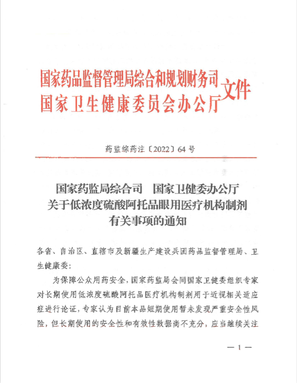 事实上,在此之前的一个月里,市场屡有“互联网诊疗将限制开具阿托品“的消息传出,不过该传闻始终未被确认。但即便如此,这也并不影响对兴齐眼药等眼科医疗相关个股的股价形成打击。特别是兴齐眼药,从6月下旬至今,公司股价已跌超4成。而公司此次官宣似乎也是从侧面证实了以上传言。与此同时,还有业内人士进一步向《科创板日报》记者透露,公司此举或与“当地药监局执行国家文件”有关。据悉,其所说“国家文件”即国家药监局联合国家卫健委下发的《关于低浓度硫酸阿托品眼用医疗机构制剂有关事项的通知》(下称《通知》),而该文件也与前述网传消息相关。