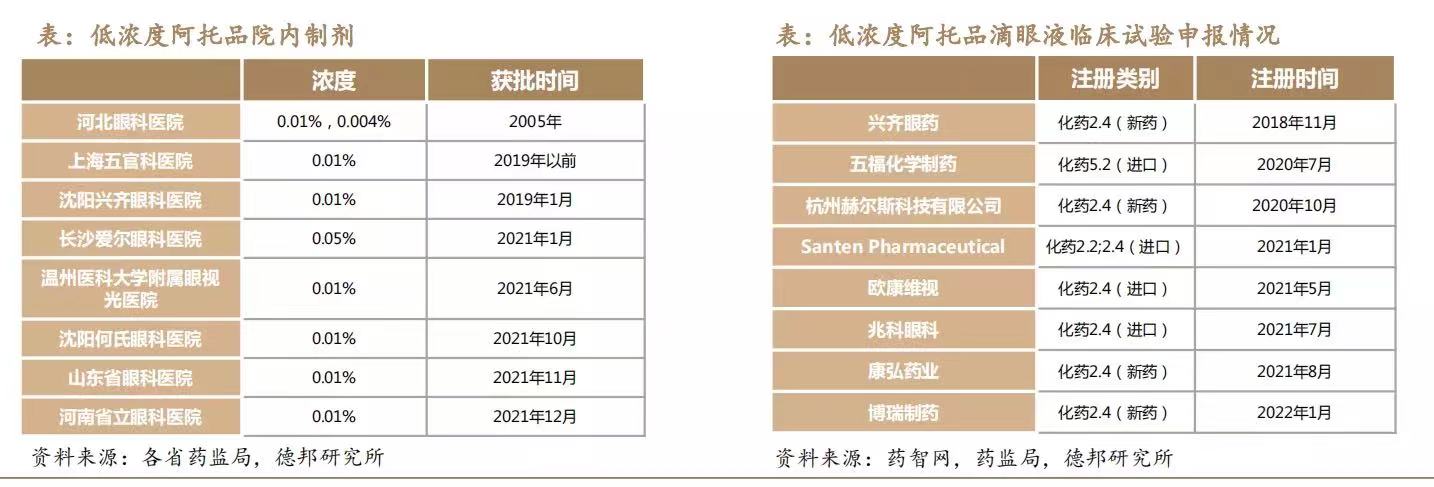 22日,亦有地方药监人士向记者确认了该份文件的真实性。。另据记者了解,欧普康视下属安徽医科大学康视眼科医院在今年5月底刚取得0.01%浓度的硫酸阿托品滴眼液的院内制剂注册证,并于7月4日起正式上市。公司已于7月16日暂停互联网诊疗开具本品。在被问及相关诊疗流程时,何氏眼科(301103.SZ)医院客服人员亦回复《科创板日报》记者称,患者需要到线下门诊问诊,才能开具阿托品处方,建议每3/6个月复诊一次。目前阿托品在眼科领域主要用于验光过程中的散瞳。虽然近年来,有多项临床研究表明,低浓度阿托品(0.01%-0.1%)可有效减缓青少年近视进展,但业界对该药的安全性、副作用一直存疑,因此在我国还尚未有通过临床验证正式获批上市的产品,目前市场上使用的产品主要是以院内制剂的形式生产销售。院内制剂,即医疗机构制剂,是指医疗机构根据本单位临床需要,经所在地省、自治区、直辖市人民政府药品监督管理部门批准而配制、自用的固定处方制剂,应当是市场上没有供应的品种。据不完全统计,目前国内有13家企业或医疗机构已获得低浓度阿托品医疗机构制剂批件,其中以公立医院为主。
