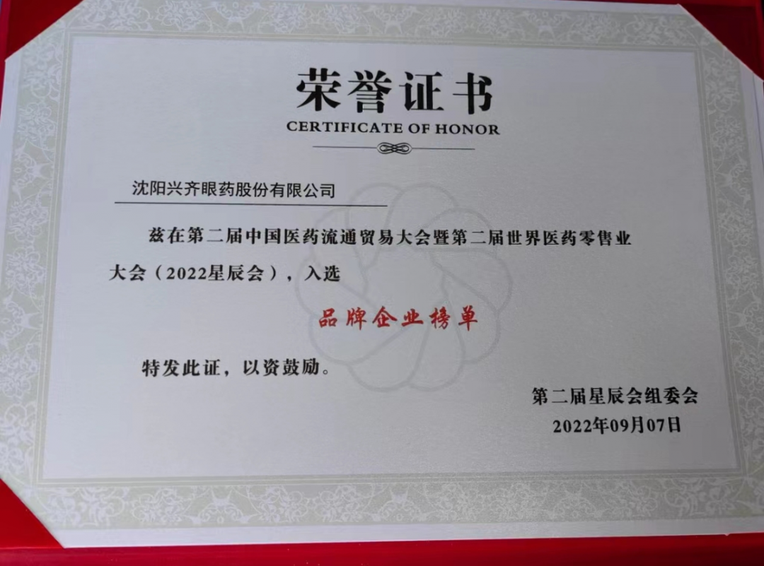 这三项荣誉的获得,是对兴齐眼药在眼科药物研究领域取得成绩的肯定,也是对公司在制药行业中做出贡献的认可。立足于新起点,兴齐眼药将继续秉承“经营健康,缔造光明”的企业使命,持续厚植发展优势,加快企业发展,与医药企业同仁共同探索新时代发展变革的新路径,不断驱动医药产业的创新发展。