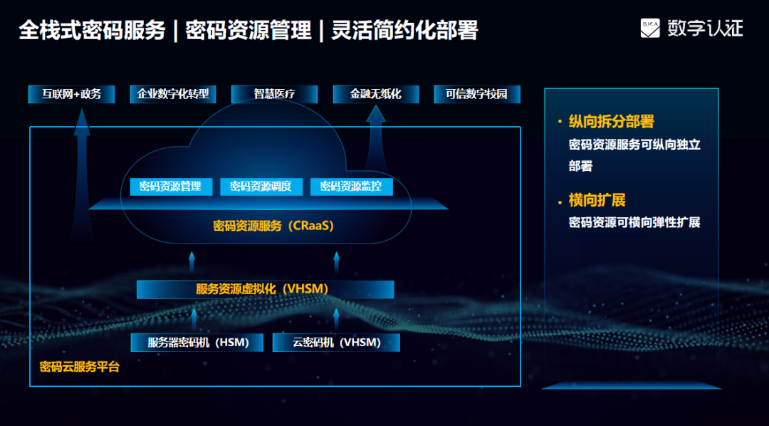 从横向来看,通过增加密码设备、扩充密码功能,实现性能、功能上的弹性水平扩展;