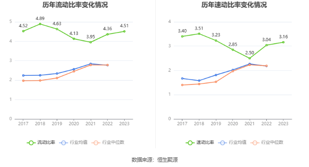 2023年,公司流动比率为4.51,速动比率为3.16。