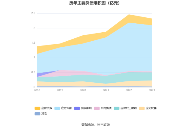 负债重大变化方面,截至2023年年末,公司应付账款较上年末减少4.96%,占公司总资产比重下降0.55个百分点;应付票据较上年末减少18.49%,占公司总资产比重下降0.39个百分点;应交税费较上年末增加19.94%,占公司总资产比重上升0.27个百分点;应付职工薪酬较上年末减少9.81%,占公司总资产比重下降0.22个百分点。