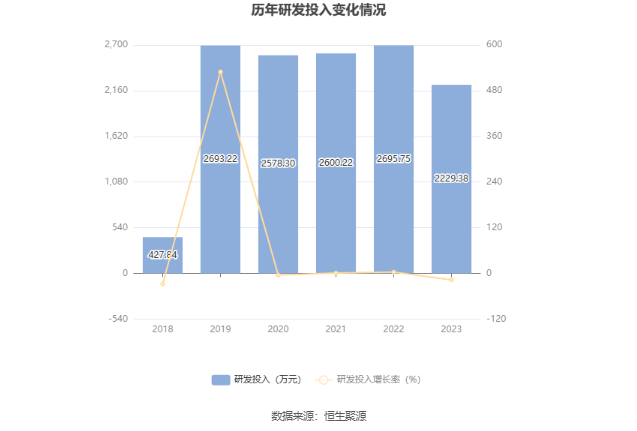 2023年全年,公司研发投入金额为2229.38万元,同比下降17.30%;研发投入占营业收入比例为9.55%,相比上年同期下降2.02个百分点。此外,公司全年研发投入资本化率为0。