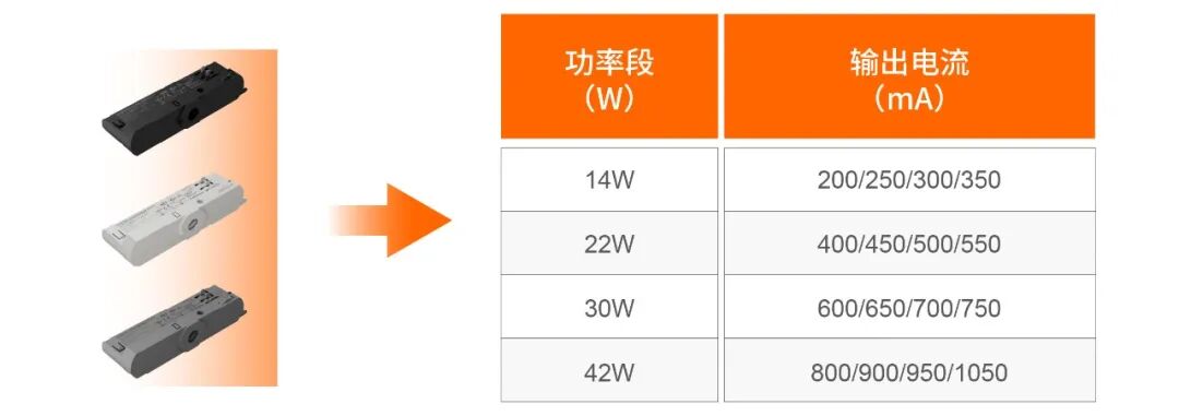 IT FIT CS T HE 单型号支持4种电流输出可选,并提供黑、白、灰三种配色。无论是新建项目还是改造升级,都能轻松匹配不同灯具的电气需求与空间的设计风格,极大简化了选型、采购与库存管理。