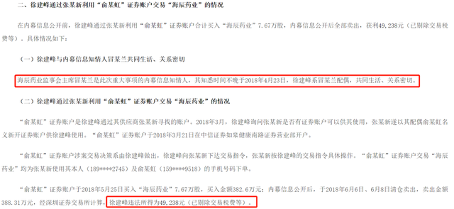结果是,没收徐建峰内幕交易所得49238元,并处罚金147714元!