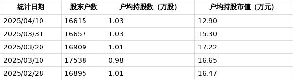从4月14日公开信息显示,奥联电子截至2025年4月10日公司股东户数为1.66万户,较上期(2025年3月31日)减少42户,降幅为0.25%,变化不大。