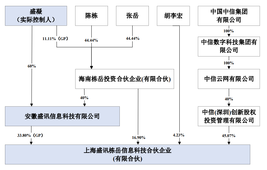 在尽职调查结果满意、内部审批流程通过等前提条件成就后,后续中信(深圳)创新股权投资管理有限公司拟作为有限合伙人对上海盛讯进行投资,上海盛讯的合伙结构可能发生变动。预计变动完成后,上海盛讯股权结构图如下: