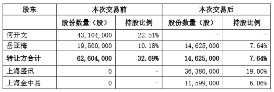 本次转让的权益变动前后,交易各方在上市公司所拥有的权益的股份情况如下表所示: