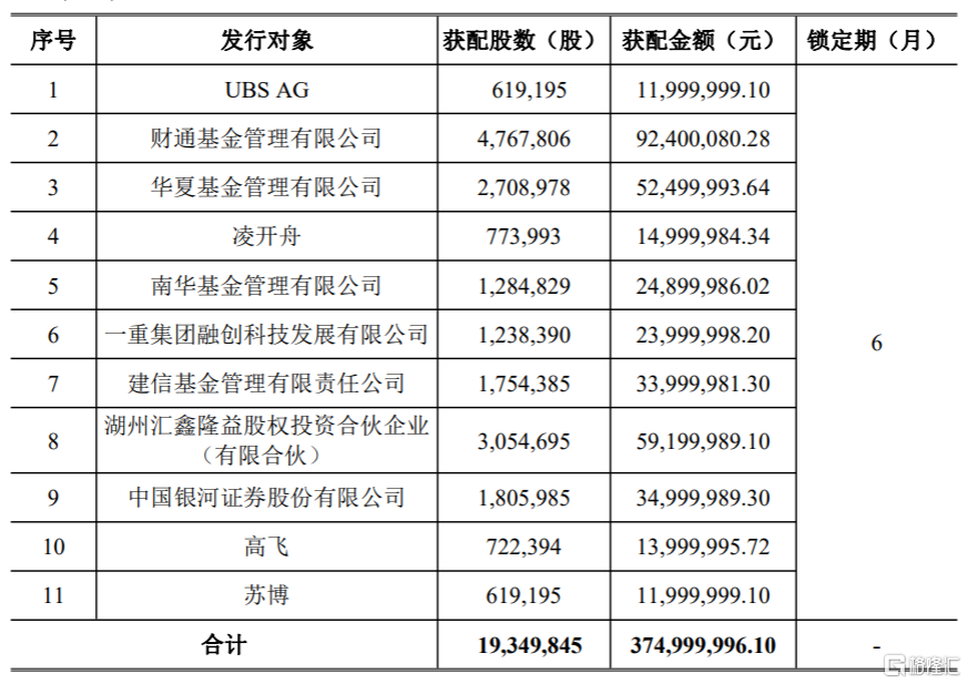 格隆汇12月2日丨江龙船艇(300589.SZ)披露向特定对象发行股票发行情况报告书,发行价格最终确定为19.38元/股,发行数量约为1934.98万股,募资总额约为3.75亿元;最终获配投资者共11家,锁定期为6个月。