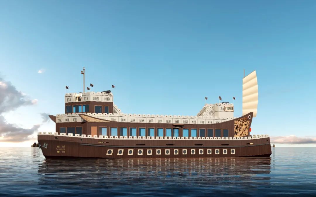 该船为全钢质结构,采用纯电力全回转双机推进,总长36.8米、型宽9.0米,型深3.1米,设计航速9节。该船外观设计以鸦片战争为历史背景,还原虎门海战的设计理念,完美融合中国古典美与现代美,重点突出中国传统元素,带来强烈的视觉冲击。该船不仅具备观光接待、商务活动、文化交流等功能。