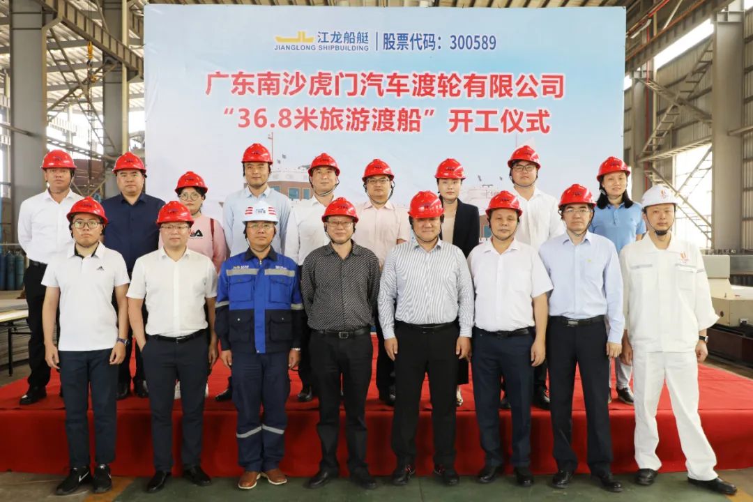 近日,江龙船艇(股票代码:300589)承建的广东南沙虎门汽车轮渡有限公司36.8米旅游渡船点火开工。该船采用纯电力推进,是广东自贸区首艘新能源游船,将成为建设绿色珠江、美丽珠江的一张靓丽名片。广州南沙资产经营集团有限公司副总经理刘胜光,广东南沙虎门汽车渡轮有限公司副总经理邹永贵以及江龙船艇董事兼副总经理贺文军等出席开工仪式。