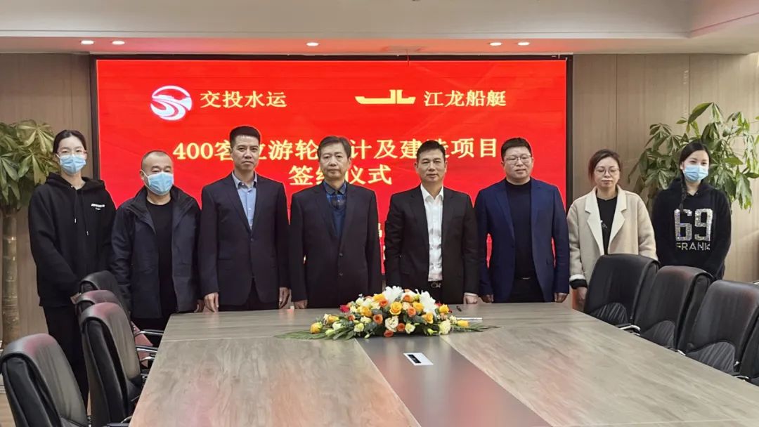 近日,江龙船艇(股票代码:300589)签约南昌交投水运有限公司400客位电动双体游船项目建造合同。该船是江西省目前最大的豪华纯电动游船,将进一步展现南昌“名城、名江、名阁、名景”的文化底蕴,提升旅游品质,推动水上旅游绿色发展。南昌交通投资集团总经理肖壮、副总经理王起飞,南昌交投水运有限公司董事长裘华以及江龙船艇董事长兼总经理晏志清、营销中心总经理骆宗亮等出席签约仪式。