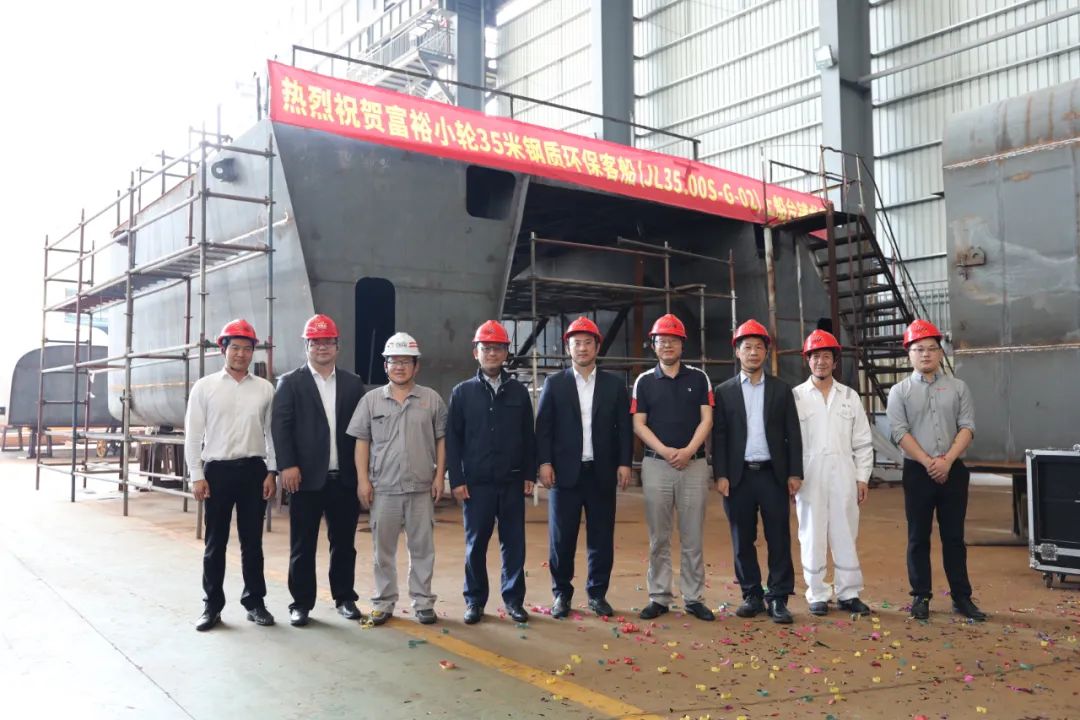 近日,江龙船艇(股票代码:300589)承建的富裕小轮“香港水上的士18”号钢质环保客船举行铺龙骨仪式,富裕小轮有限公司总经理于世发、商务总监李志刚以及江龙船艇董事兼副总经理贺文军等出席仪式。