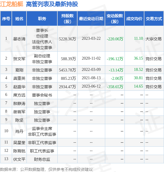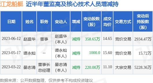江龙船艇近半年内的董监高及核心技术人员增减持详情如下: