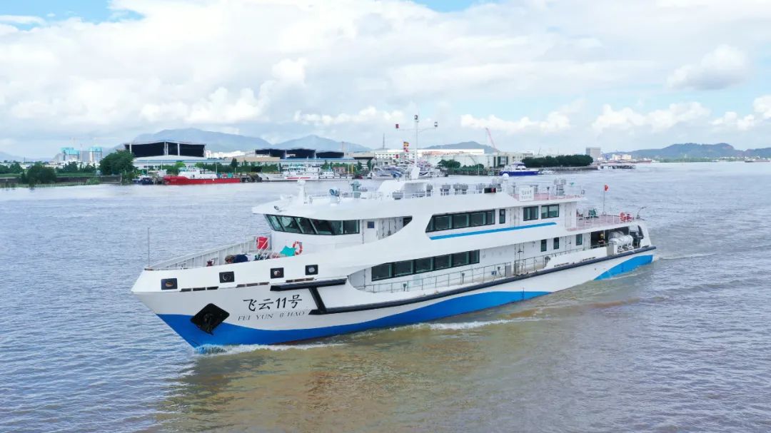 近日,江龙船艇(股票代码:300589)承建的浙江省瑞安市利伟高速客轮有限公司230客位客船“飞云11号”顺利完成航行试验。该船外观现代前卫,涂装融合海岛风情特色,交付后主要用于浙江瑞安与南麂岛海域的旅客运输,是该航线最豪华的旅游客船。