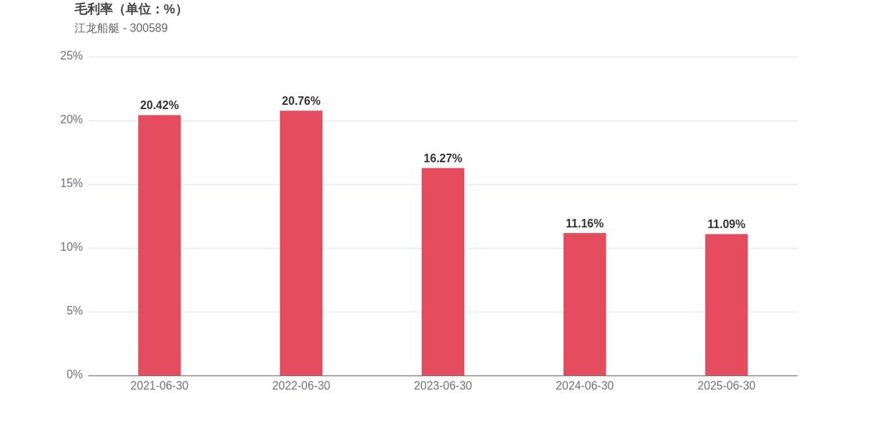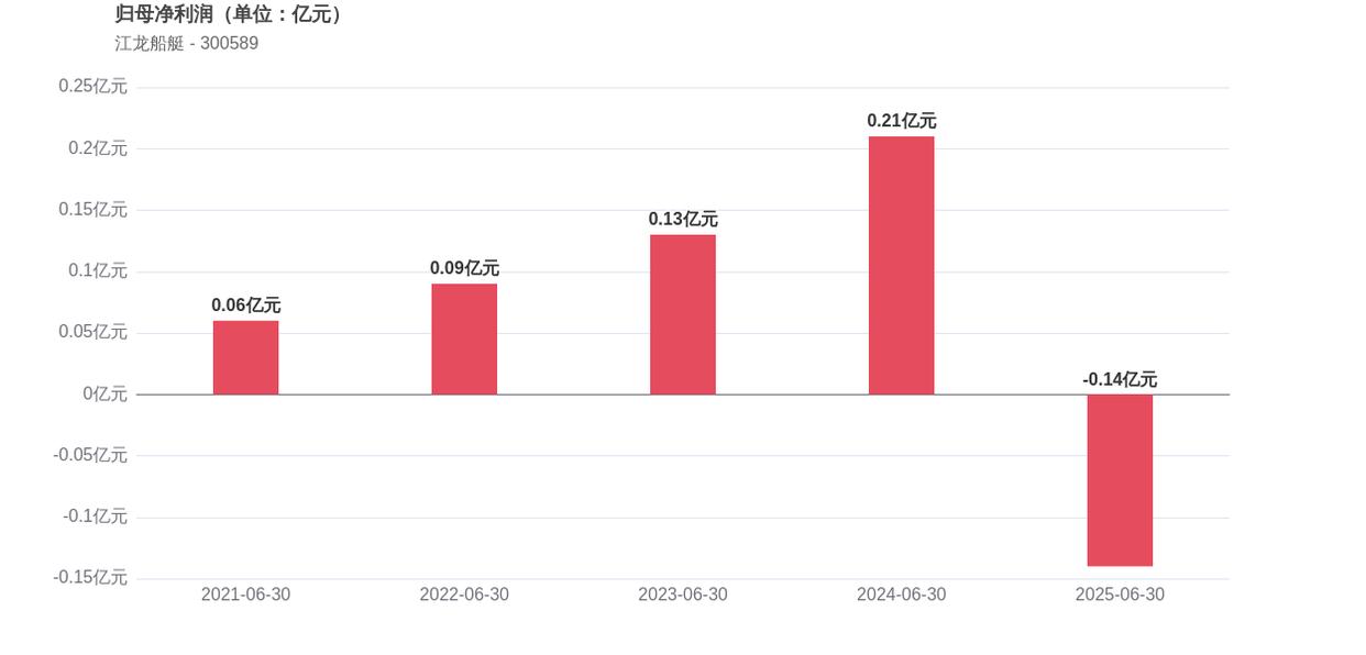 从机构持股情况来看,截至2025年上半年,持有江龙船艇股票的机构家数仅为1家,相比2024年同期的26家大幅减少25家,机构投资者信心明显减弱。
