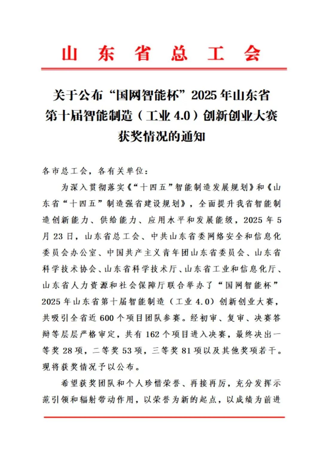 近期,由山东省总工会、中共山东省委网络安全和信息化委员会办公室、共青团山东省委、山东省科学技术协会、山东省科学技术厅、山东省工业和信息化厅、山东省人力资源和社会保障厅主办的“国网智能杯”2025年山东省第十届智能制造(工业4.0)创新创业大赛圆满闭幕,朗进科技“轨道空调总装线数字化车间”项目获大赛二等奖,彰显了公司在智能制造领域的卓越实力与创新精神。