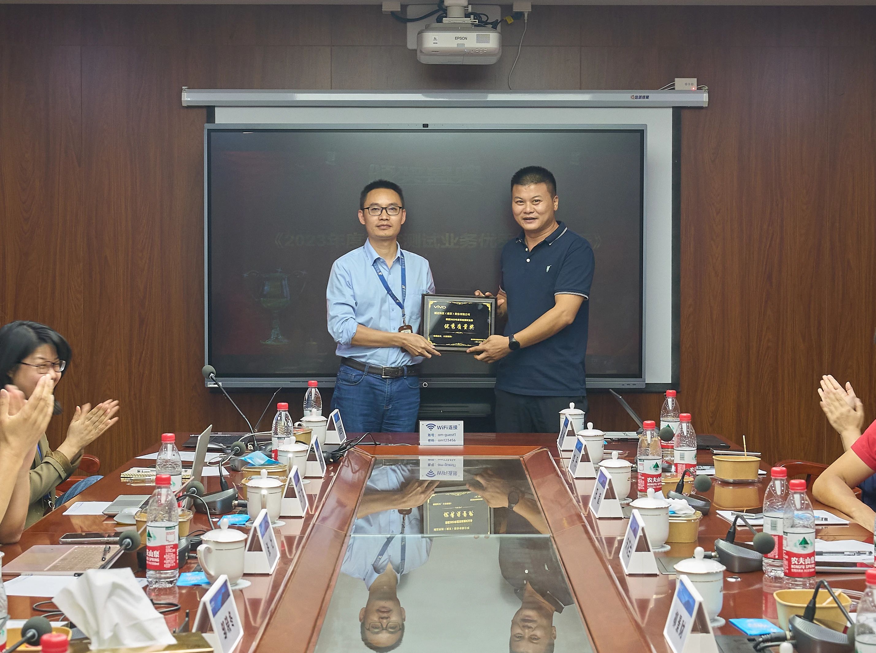 vivo测试技术与口碑管控领域总经理柳景财、软件品质部总经理徐明亮、OS体验测试部总经理宋花兰、采购总监赵卫东、人力资源总监唐家泉、采购经理闫晓东等领导,以及诚迈科技执行副总裁邹晓冬、副总裁童仁荣、副总裁王利明等一起出席颁奖仪式。