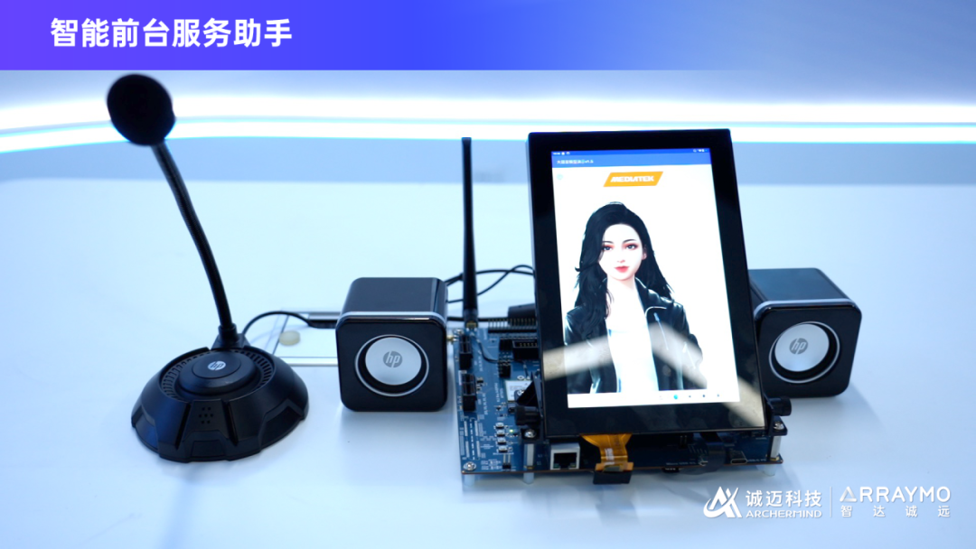 智能前台服务助手:该产品基于MTK8390研发,结合3D数字人、本地ASR/TTS算法和MTK大型云服务平台等核心技术,可提供智能互动、解惑答疑、智能引导等服务。作为无需柜台人员的自助解决方案,该助手能快速准确地为客户提供店内信息,提升服务体验和服务效率。
