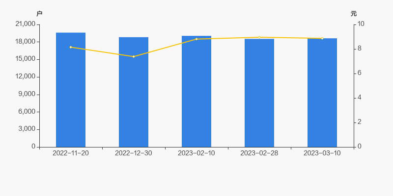 2022年11月20日至今,公司股东户数有所下降,区间跌幅为4.96%。2022年11月20日至2023年3月10日区间股价上涨8.83%。