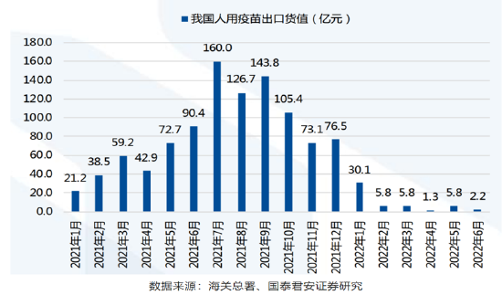 据悉,2021年,我国疫苗的出口总额超过1000亿元人民币,其中绝大部分是新冠疫苗的出口;但是整个2022年前6个月,中国人用疫苗的出口总额只有51.1亿元人民币,跌幅高达95%。
