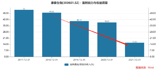 其次,预提费用藏的水分,销售费用同样以2021年数据为例,假设以非免疫规划疫苗24.86亿元的收入为计算基数,按照历年40%的预提费用,则公司销售费用或需要补提金额或超4亿元。